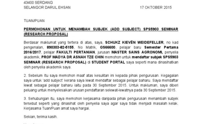 Surat rasmi permohonan drop subjek rasmi b. Contoh surat rasmi menggugurkan subjek rasmi j.
